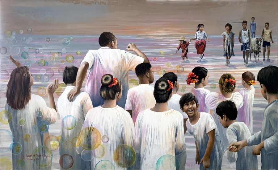 L(e)ast of These (Rev 6:11). Oil on canvas on aluminum composite panel, 24 by 36 inches unframed. Completed February 2022.