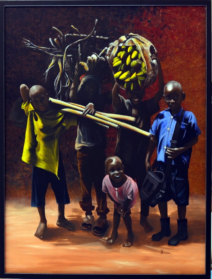 Later, as the painting was composing itself, the theme came clear. These kids represented the range of affluence in the village. Some had shoes, some did not. Some went to school, some did not. Some had nice clothes, some did not. Some had a future, some did not. Could you tell there was a difference by their faces? No. Is there something to learn from them? I think so.