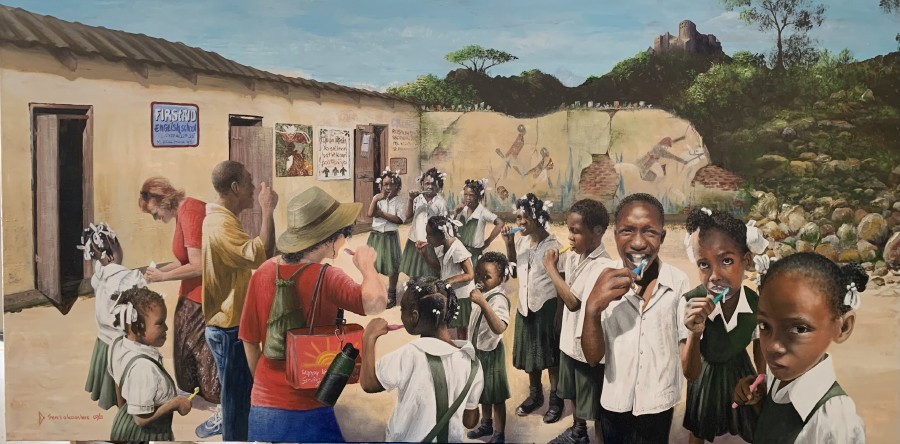 It's been eleven years since I participated in my last short term mission trip to Haiti. They hated us. Its taken a while to come to an understanding about that trip, and this painting is the result. As the painting progressed, it revealed at least four layers of truth. Namely, on a superficial level who wouldn't despise a group of pampered, overdressed, structurally arrogant blancs who think you don't know how to brush your teeth? Digging a little deeper, Haitians are as informed by their revolution as Americans are by theirs. The Haitian Revolution lasted 13 years with them fighting off not just the British but the Spaniards and French to finally win their freedom. Their leader was betrayed and died in a French prison. Ours became the first president. Nevertheless, the Haitian revolution remains the only successful slave revolt in recorded history, and I believe for that reason all developed countries have a continued vested psychological interest in keeping Haiti down. Finally, when all of that horrific history is set in the context of an absurd tooth brushing lesson, it actually turns humorous--on both sides. I'm so glad the painting took that turn.